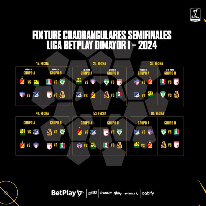 Bucaramanga y Tolima, será los cabezas de grupo de los cuadrangulares semifinales d ela Liga Betplay 2024-I, que arrancarán el próximo miércoles 1 de mayo.