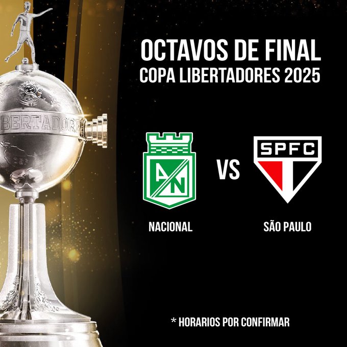 Nacional deberá enfrentar al Sao Paulo de Brasil, comenzado en Medellín en el juego de ida y el juego de vuelta se jugará en Sao Paulo, juegos programados para el mes de agosto cuando se reanuda el torneo.