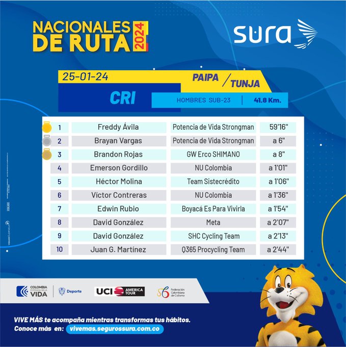 En la categoría Sub-23 los vencedores fueron, Carolina Vargas en damas y Freddy Ávila en la prueba de los varones.