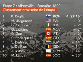 En la general, Roglic supera por un minuto y dos segundos al norteamericano Matteo Jorgenson y al canadiense Derek Gee por un minuto y 13 segundos, quienes son segundo y tercero respectivamente.