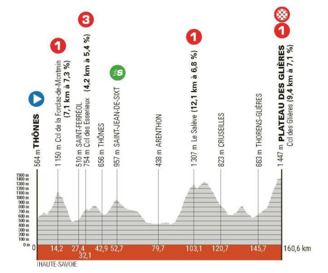 Este domingo se disputará la octava y última etapa del Critérium Dauphiné entre Thones y Plateau des Gliéres, sobre 160.6 kilómetros con cuatro pasos montañosos, uno de tercera y tres de primera categoría, uno de ellos ubicado en la línea de meta.