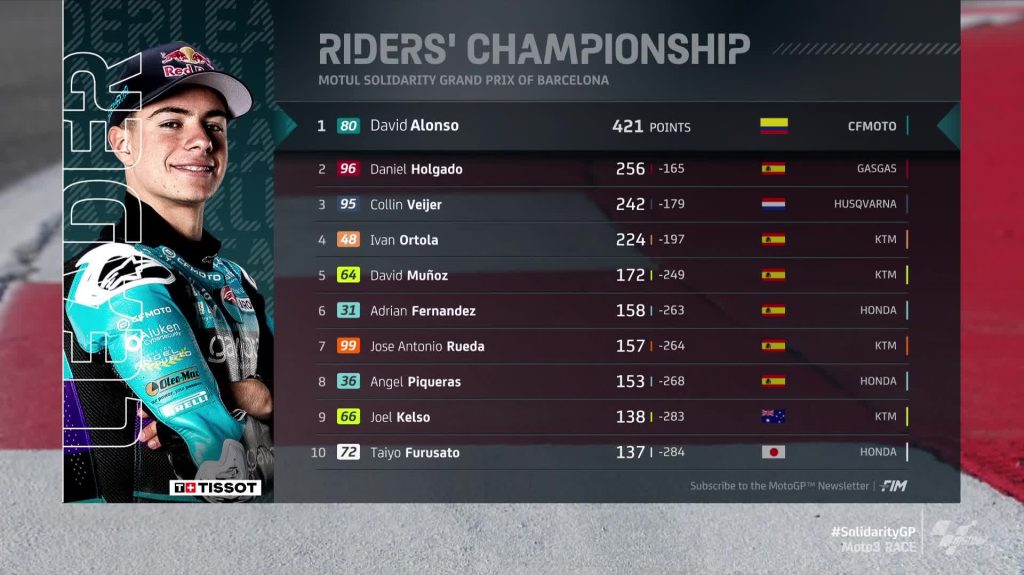 El colombo-español, David Alonso deja la Moto3 con una marca de 14 victorias nunca antes realizada y correrá en el año 2025 en al Moto2 Europea.