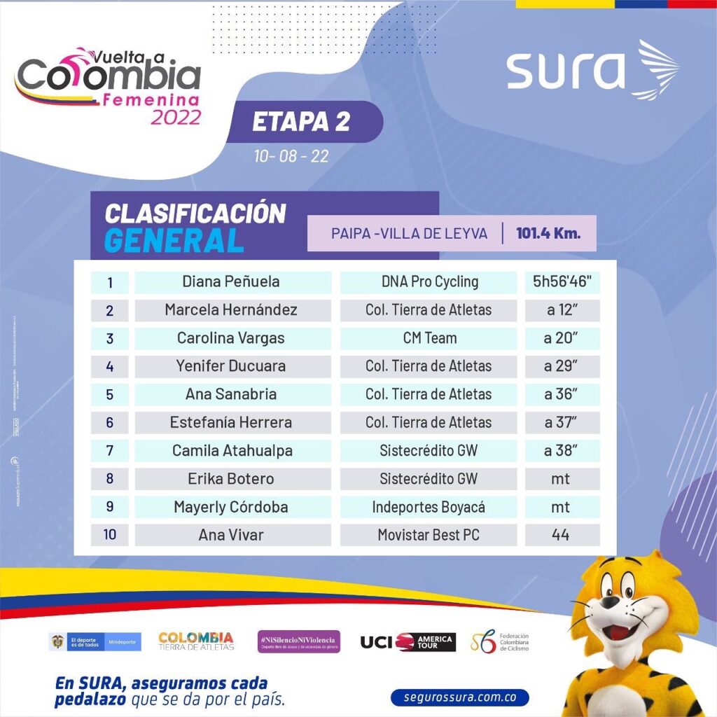 La ciclista caldense Diana Peñuela, se impuso en la segunda fracción de la Vuelta a Colombia Femenina SURA y se ratificó como líder de la carrera.