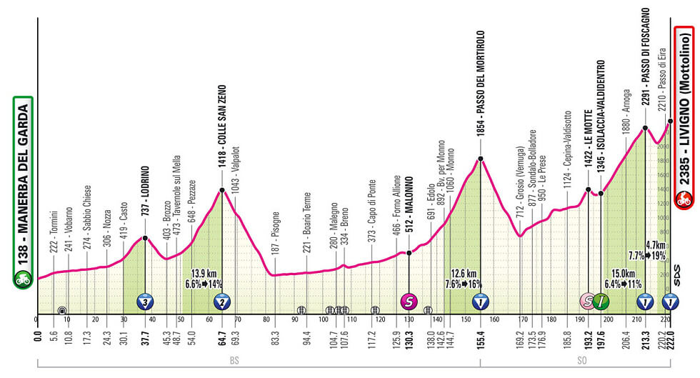 La corsa rosa, continuará este domingo con la etapa más larga de la presente edición, sobre 222 Kilómetros entre Manerba del Garda y la estación de esquí de Mottolino en Livigno, jornada de alta montaña con final en alto de primera categoría.