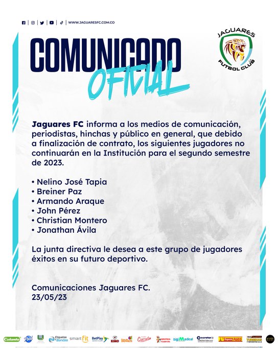Además, el equipo confirma la salida de varios jugadores para el segundo semestre, jugadores que terminaban contrato con la institución en los próximos días.