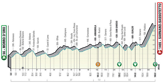 La quinta etapa se disputará este viernes sobre 168 kilómetros entre Morro d’Oro y Sarnano-Sassotetto, que finalizará con puerto de montaña de categoría especial.