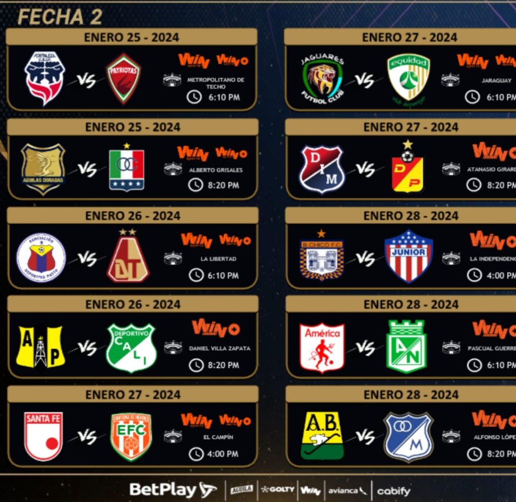 Así se jugará la segunda fecha de la Liga BetPlay.