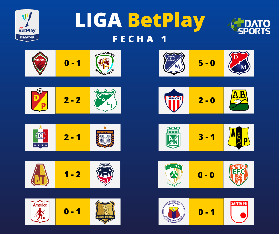 Finalizó la primera fecha de la Liga BetPlay 2024, con triunfo de Santa Fe como visitante y empate de La Equidad en condición de local.