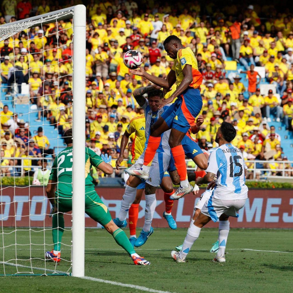 El partido entre a jugarse en la media cancha con poca profundidad, De Paul lo intento de media distancia y Colombia con pases largos y de uno de esos, James puso a correr a Díaz y terminó en un par de tiros de esquina, en la segunda ocasión cobro en corto de Arias a James y este con centro preciso para que llegando de atrás Yerson Mosquera con un sostenido la clavar en el arco argentino y poner a celebrar a toda una nación.