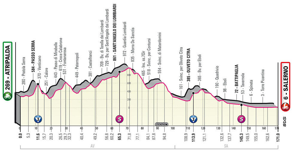 La quinta etapa del Giro 106, se disputará sobre 171 kilómetros entre las localidades de Atripalda y Salerno, que cuenta cos dos puertos de tercera categoría.