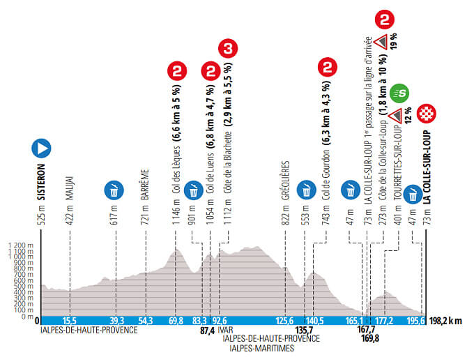 La sexta y antepenúltima etapa se disputará este viernes sobre 198.2 kilómetros, con cuatro puertos de segunda categoría y uno de tercera entre las localidades de Sisteron – Le Colle-sur-Loup.