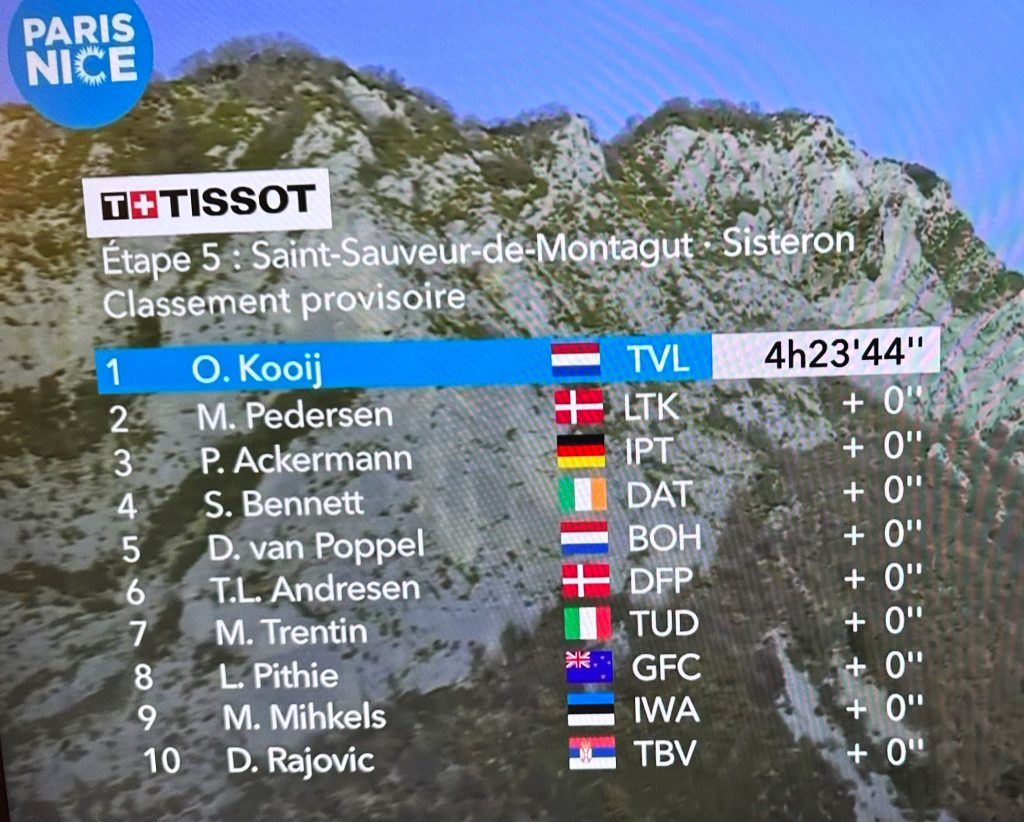 El neerlandés Olav Kooij (Visma-Lease a Bike) volvió a demostrar que es el más veloz de la carrera al imponerse al sprint en la quinta etapa de la edición 82 de la París-Niza, mientras que el australiano Lukas Plapp sigue como líder de la carrera.