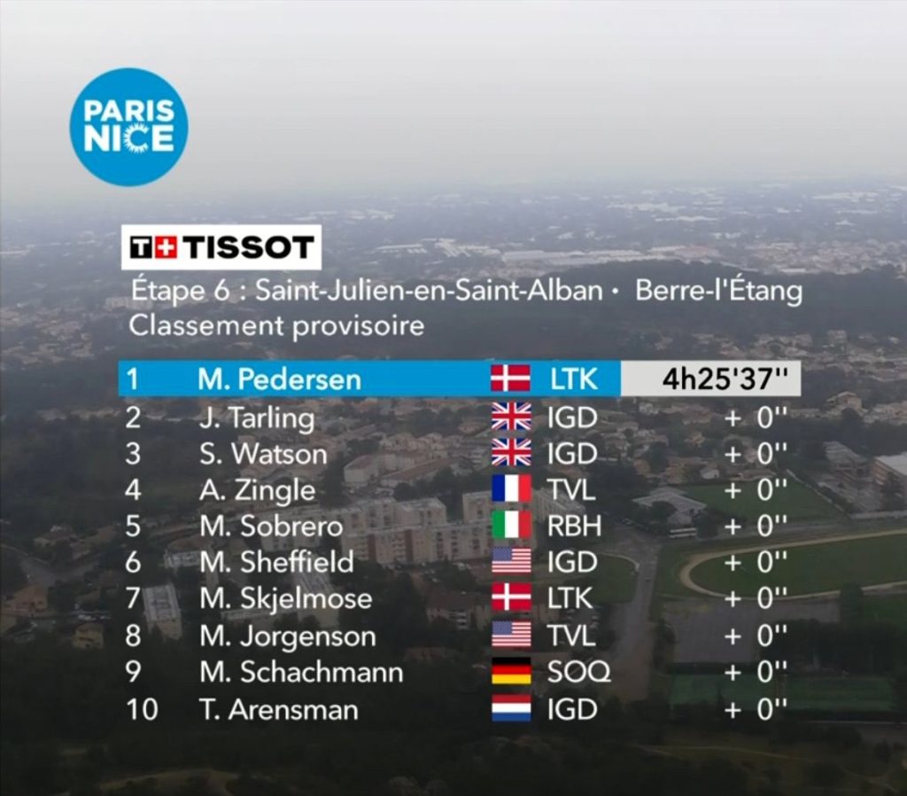 Pedersen volvió a demostrara su gran estado de forma en esta temporada, imponiéndose con autoridad por delante de dos integrantes del Ineos Grenadiers, Joshua Tarling y Samuel Watson.