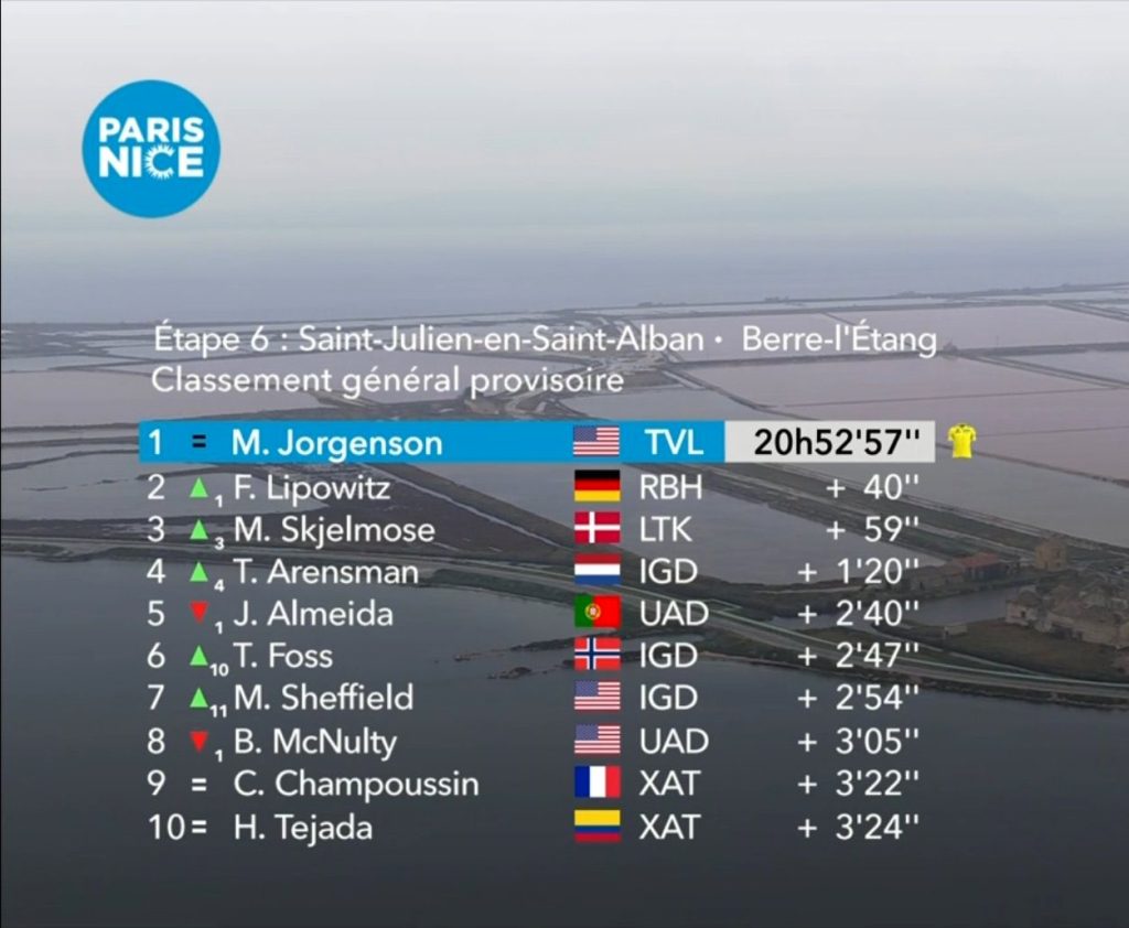En un apretado final, el danés Mads Pedersen (Lidl-Trek)se impuso en la sexta etapa d ela París-Niza, después de recorrer los 209.8 kilómetros marcados pro el viento y los abanicos que fueron el condimento d ela fracción , que mantuvo a Matteo Jorgenson como líder.