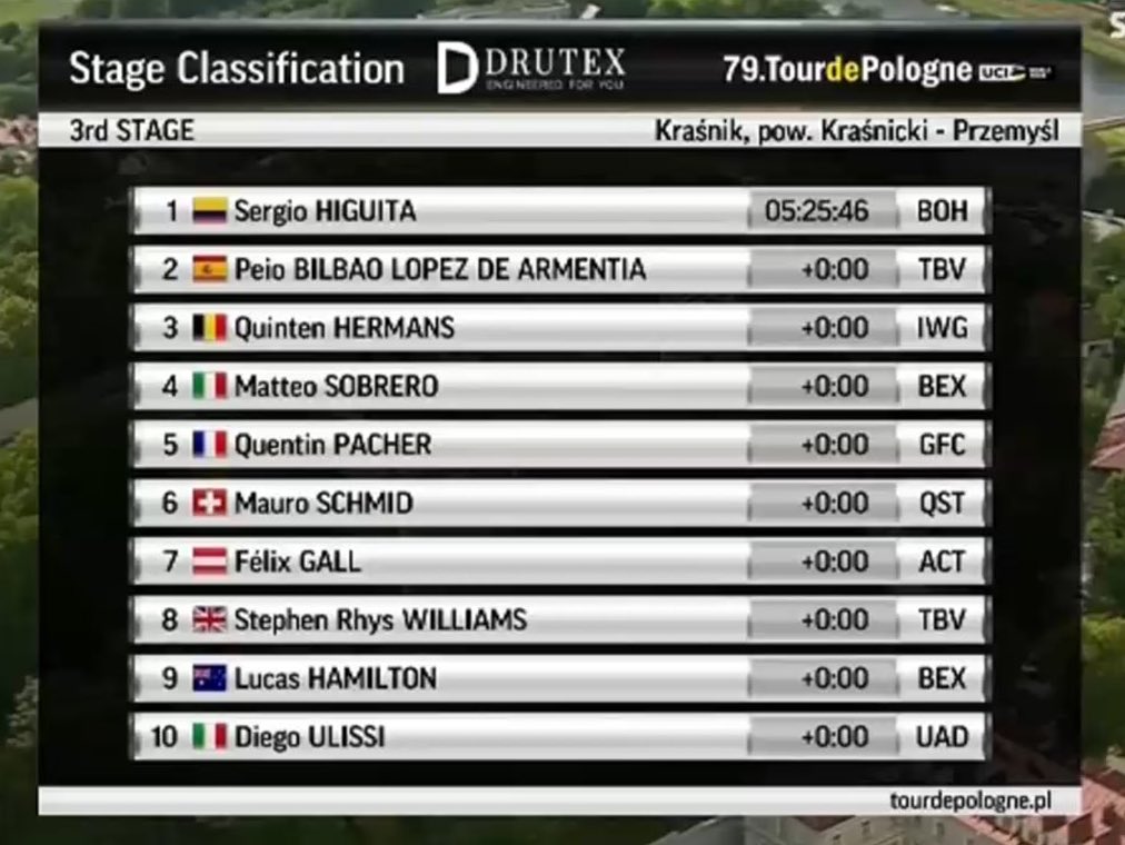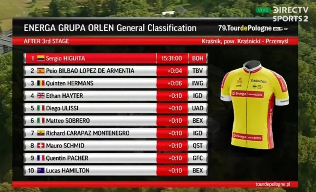 El ciclista colombiano Sergio Higuita se impuso en la tercera etapa de la Vuelta a Polonia y se apoderó del liderato de la competencia que finaliza el próximo miércoles.
