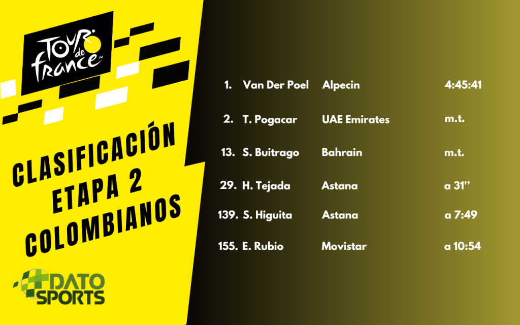 El ciclista neerlandés Mathieu Van del Poel (Alpecin-Deceuninck), se impuso en la segunda etapa del Tour de Francia, la más larga de la presente edición de 209.1 kilómetros y se apoderó del maillot de líder.