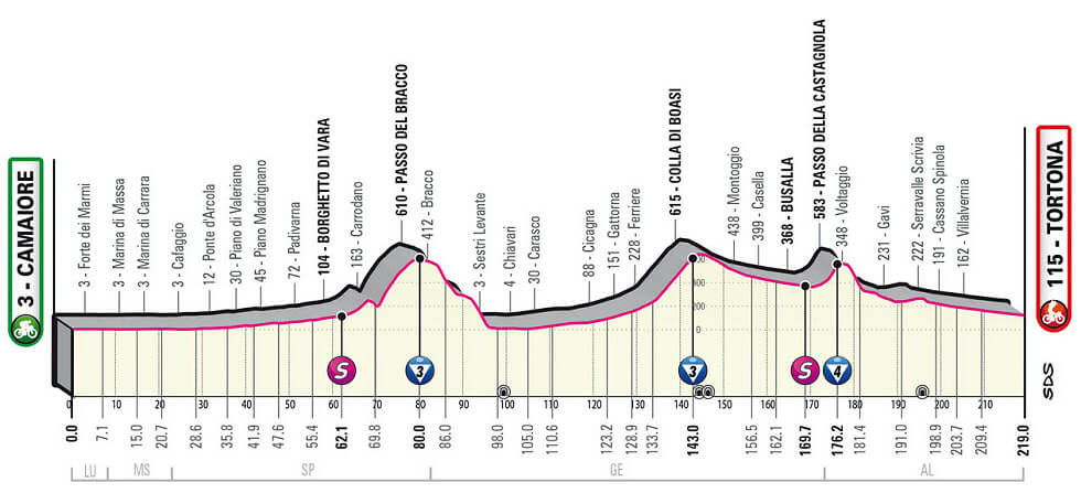 La undécima etapa de la carrera, se correrá entre las localidades dé Camiore y Tortona sobre 219 kilómetros, con final en terreno llano.