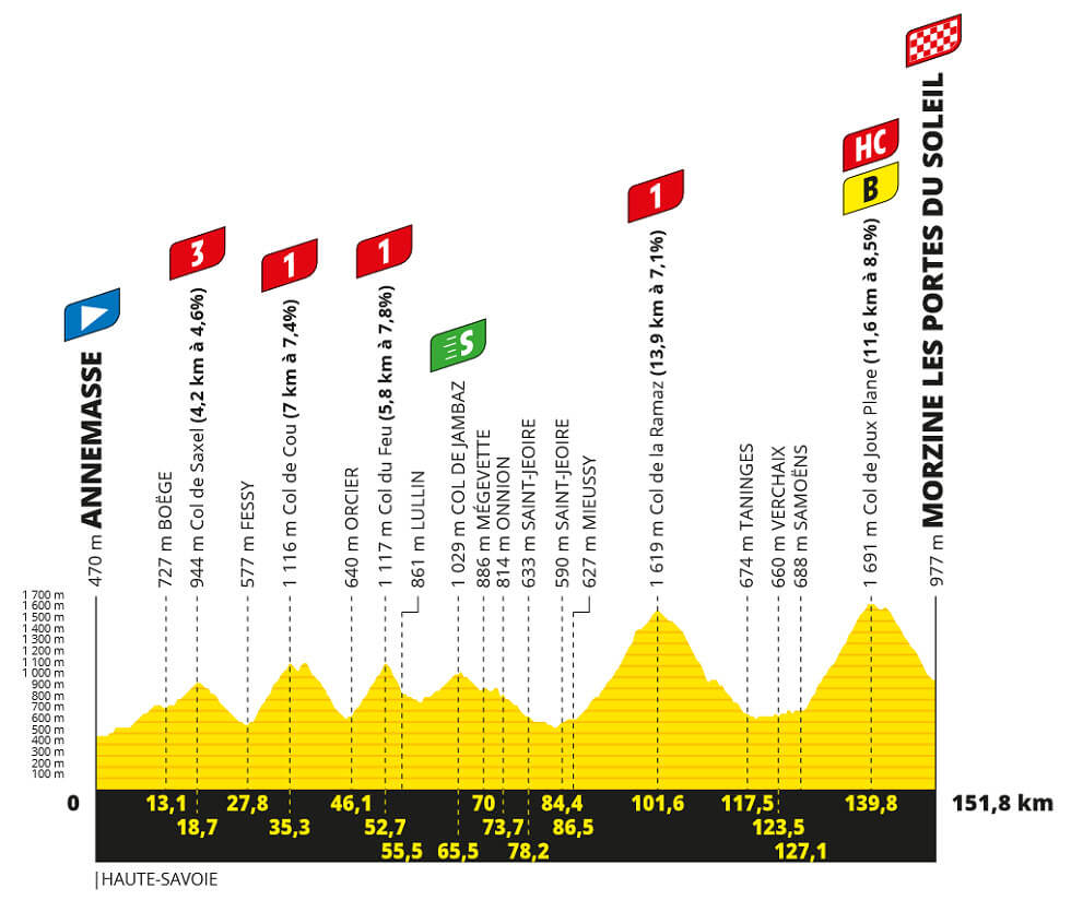 Este sábado el Tour llega a los Alpes, con una etapa de alta montaña con final en descenso, que arrancará en Annemasse y que finalizará en Morzine, después de recorrer 151.8 kilómetros y en la que los pedalistas deberán superar cinco puertos de montaña, uno de tercera, tres de primera y uno de categoría especial a 17 kilómetros de la línea de meta.