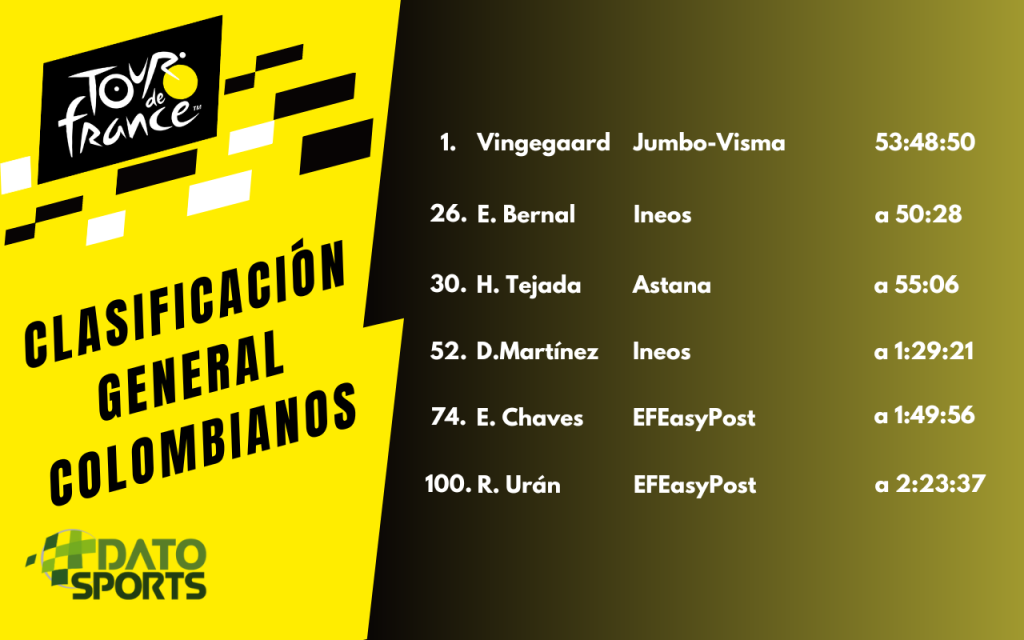 El colombiano Harold Tejada (Astana) fue el mejor en la fracción, al ingresar en la octava casilla, mientras que Egan Bernal sigue siendo el mejor en al general.