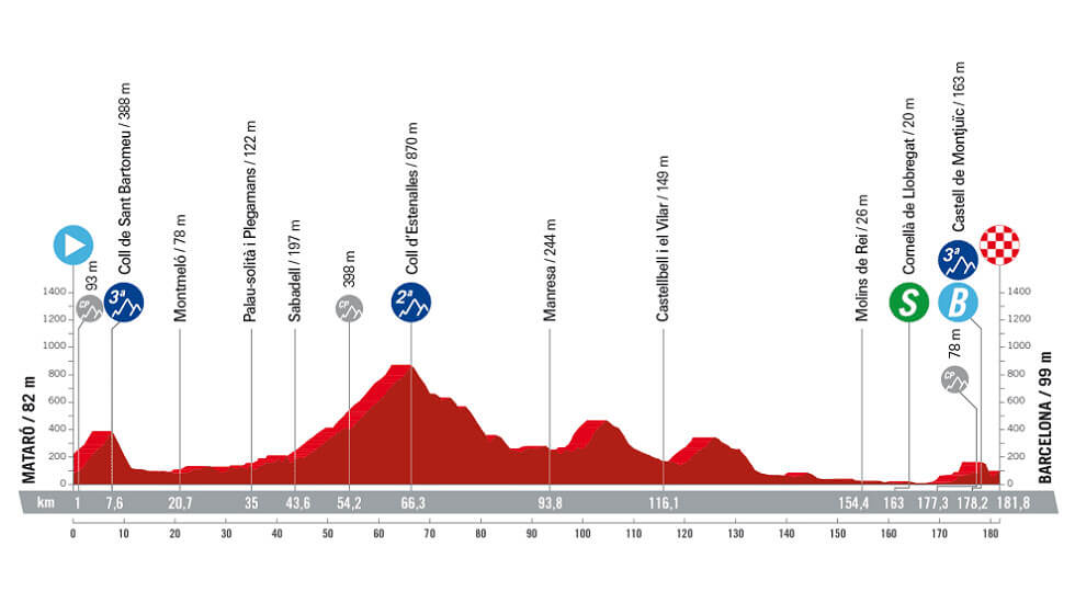 Este domingo se disputará segunda etapa entre las localidades de Mataró y Barcelona, jornada de media montaña de 182 kilómetros, con tres altos, dos de tercera y uno de segunda categoría.