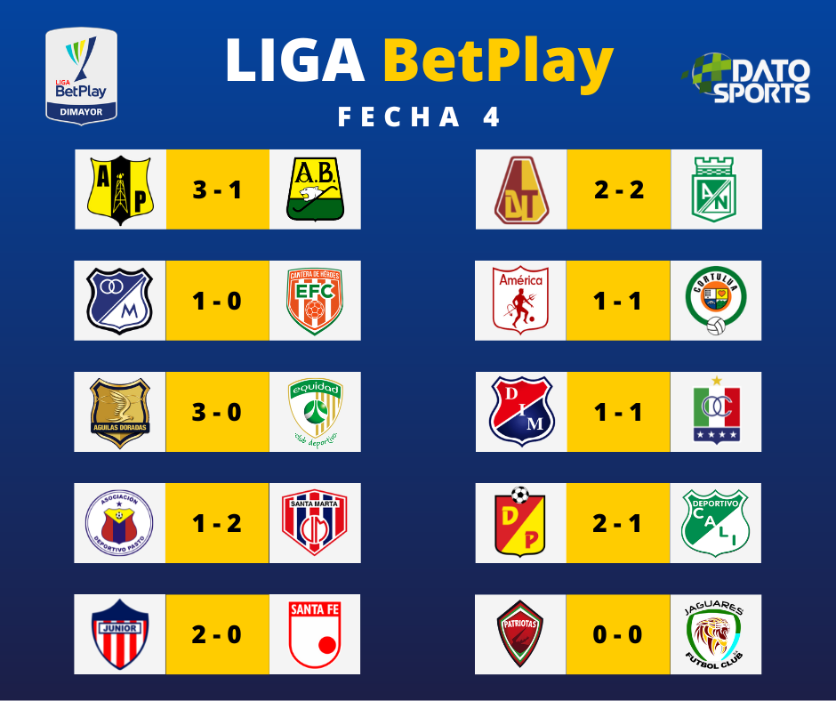 Así va la liga BetPlay después de cuatro jornadas disputadas, aunque hay 4 juegos aplazados.