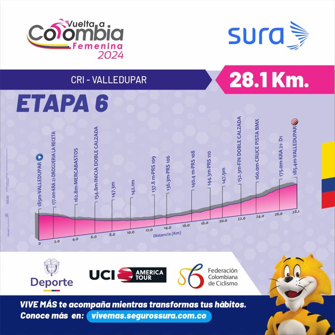 Este domingo se correrá la sexta y última etapa de la Vuelta a Colombia Femenina, con una contrarreloj de 28.1 kilómetros en Valledupar.
