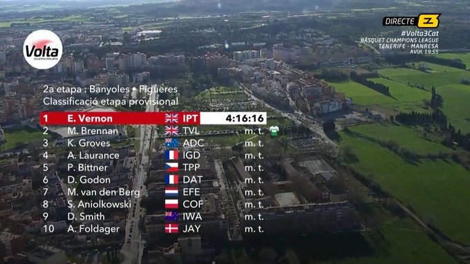 El ciclista británico Ethan Vernon (Israel-Premier Tech) se impuso en la segunda etapa de la Volta a Catalunya de 177. 3 kilómetros entre Banyoles y Figueres, qie se definió al sprint.