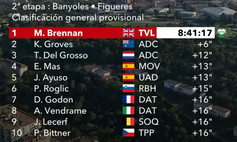 Brennan conserva el liderato de la clasificación general indivudual gracias a las bonificaciones obtenidasd en la primera etapa.