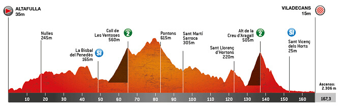 La quinta etapa se disputará este viernes entre las localidades de Altafulla y Viladecans de 167.3 kilómetros con dos sprint bonificables y dos puertos de montaña ambos de segunda categoría.