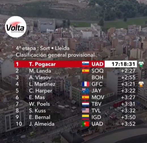 El esloveno Tadej Pogacar (UAE Emirates) mantuvo el maillot de líder de la carrera, mientras que el mejor colombianos sigue siendo Egan Bernal (Ineos-Granadiers) en la novena casilla a 3 minutos y 50 segundos del líder.