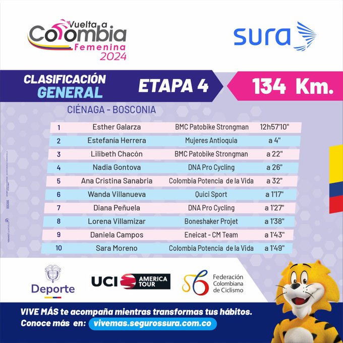 La ecuatoriana Esther Galarza (Pato Bike BMC) mantuvo el maillot de líder, ya que la general no registró cambios en las primeras posiciones.