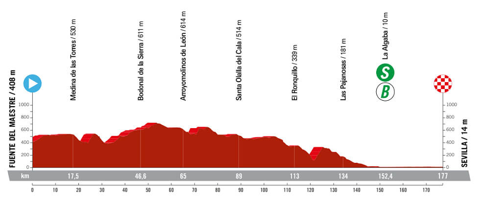 Este martes los velocistas volverán a escena, cuándo se cumpla la quinta etapa entre Fuente del Maestre y Sevilla sobre 177 kilómetros con un sprint bonificable a 25 kilómetros de la meta.