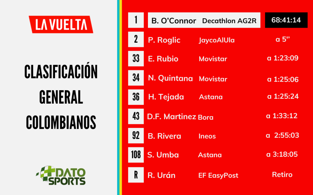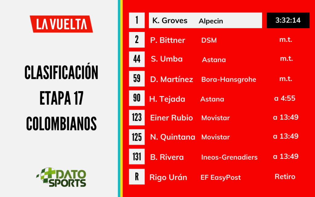 El ciclista australiano Kaden Groves (Alpecin-Deceuninck) sumó su tercera victoria parcial en la presente edición de la Vuelta a España, la ganar la decimoséptima etapa que finalizó en Santander y mantuvo a su compatriota Ben O’Connor (Decathlon AG2R) como líder.